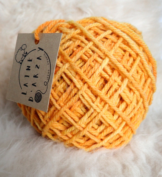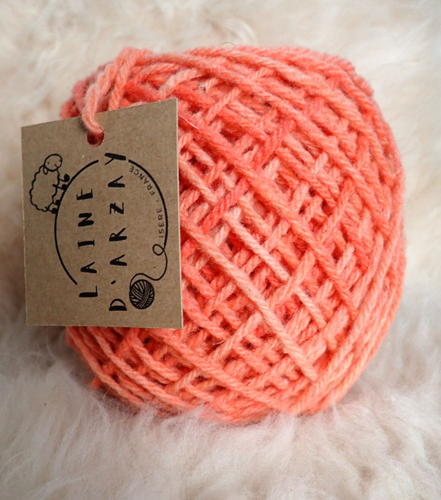 Notre fil mérinos, coloré avec des colorants alimentaires, se tricote avec des aiguilles de taille 4. La pelote de 50 g correspond à peu près à un minimum de 125 m de fil. Il s'agit d'un fil à 3 brins (3 brins sont associés pour former le fil), 100% laine mérinos de nos brebis.